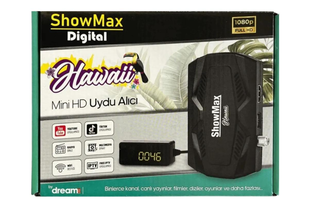 ShowMax Hawaii Mini HD Uydu Alıcısı kompakt boyutu ve gelişmiş teknolojik özellikleriyle kullanıcı dostu bir deneyim sunar
